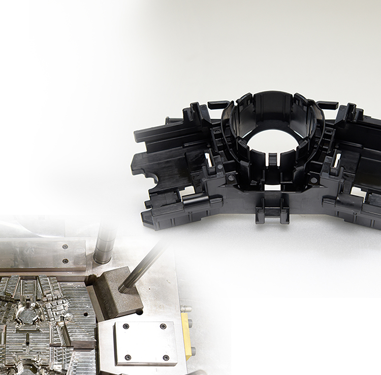 自動車部品を生産する樹脂金型・ダイカスト金型及び金型部品を製作しております。金型設計~計測までを自社で行い、高精度の2色成形金型製作を得意としております。